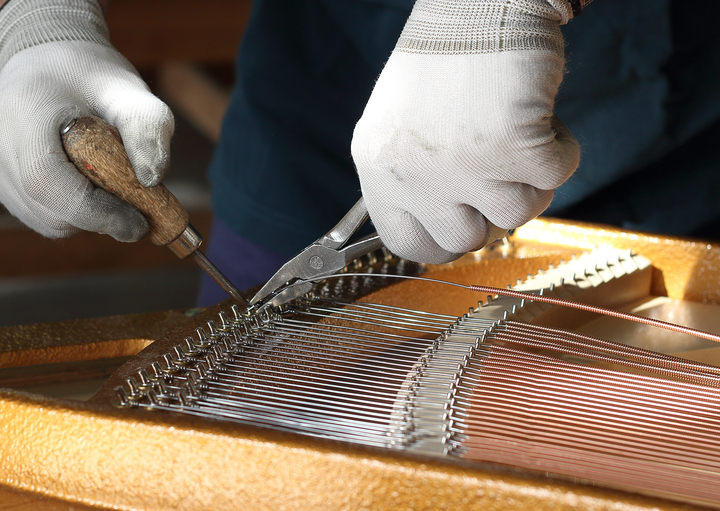 El secreto del conocido barnizado tipo piano está, entre otras cosas, en el número de sus capas. Para el acabado de la superficie de un piano, la madera recibe desde cinco a nueve capas de pintura hasta que el lacado tiene un grosor de cerca de un milímetro. Después, la pintura debe secarse por completo.