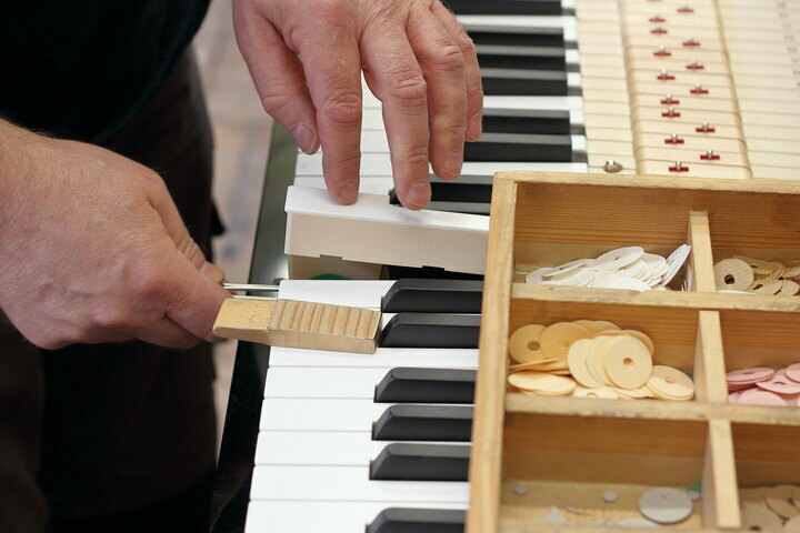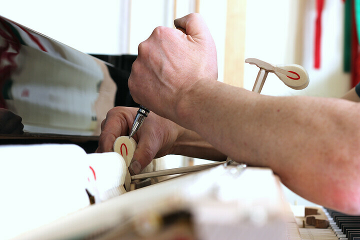 El negro sigue siendo el color más solicitado tanto en los pianos verticales como en los de cola. No obstante, si el cliente lo desea, AUGUST FÖRSTER también fabrica instrumentos de color rojo rubí, azul acero o violeta burdeos, a menudo en blanco y, por supuesto, con diversos tipos de chapado: cerezo, nogal, haya, roble, caoba... Si el cliente nos comunica cómo sería su instrumento de ensueño, nosotros lo hacemos realidad.