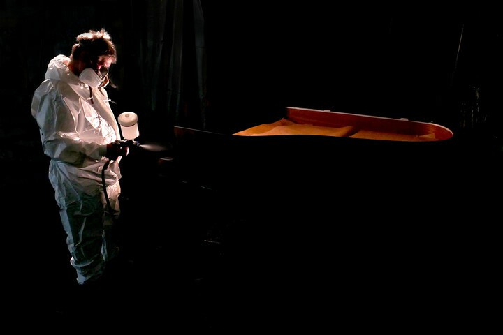 Una vez seca, se trata de lijar y lijar, una y otra vez, con un papel de lija cada vez más fino. Solo así se obtiene el negro profundo y brillante, característico del barnizado tipo piano. Por ejemplo, para finalizar la tapa de un piano de cola nuestros compañeros trabajan hasta dos días (en función de su tamaño) hasta alcanzar el brillo deseado.